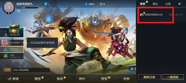 登录奖励:新玩家在首次登录时,通常会获得免费的英雄、皮肤、蓝色精粹(用于购买英雄)、金币等。
