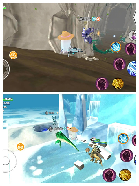3:特定角色技能:展示了游戏内不同角色的独特技能,如冠龙的脚踏、恐惧目光、疯狂脚踏、恐惧神光,以及巨拳蝎的蓄力强击、暗刺、蓄力爆破、强力暗刺等,这些技能不仅具有高伤害输出,还具备控制敌人的能力。