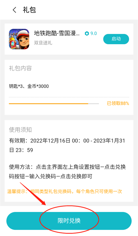 3、最后点击【限时兑换】礼包即可领取成功。