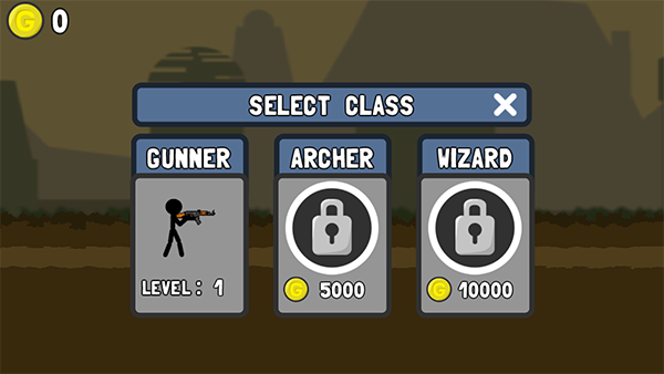 2、点击左边的“GUNNER”-->弹出“SELECT LEVEL”的界面,