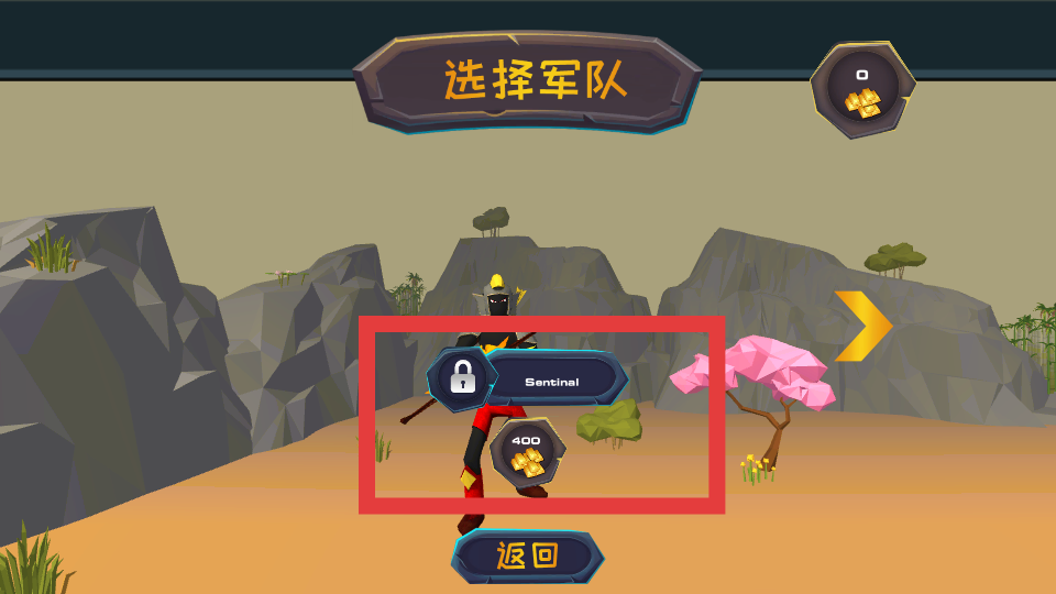 2、在选择军队界面消耗金币如400金币可解锁新军队Sentinel,可丰富作战阵营选择,提升策略多样性。