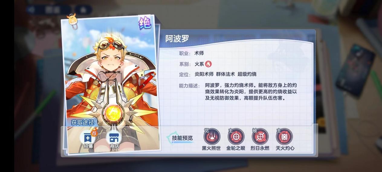 * 阿波罗是团队核心输出角色,技能能让敌方陷入灼烧状态