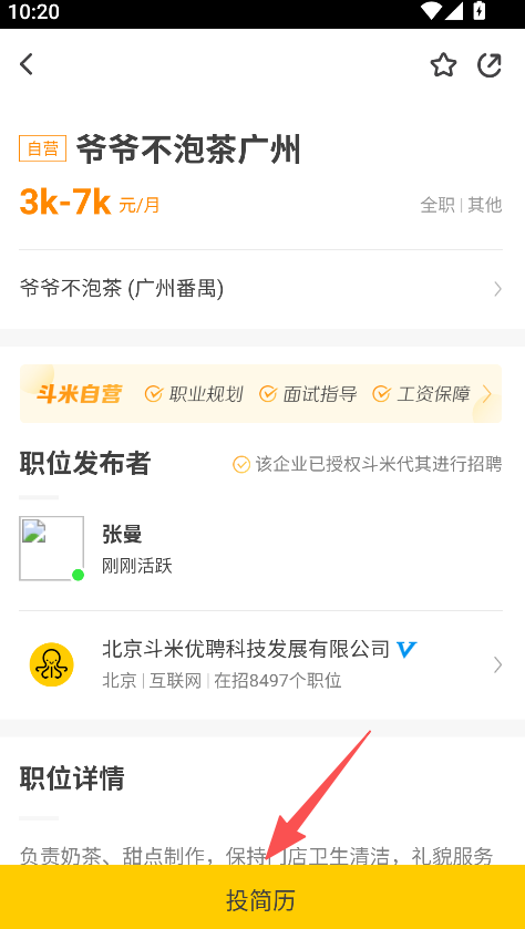 3、查看职位详情,点击 “投简历”,完成求职操作。
