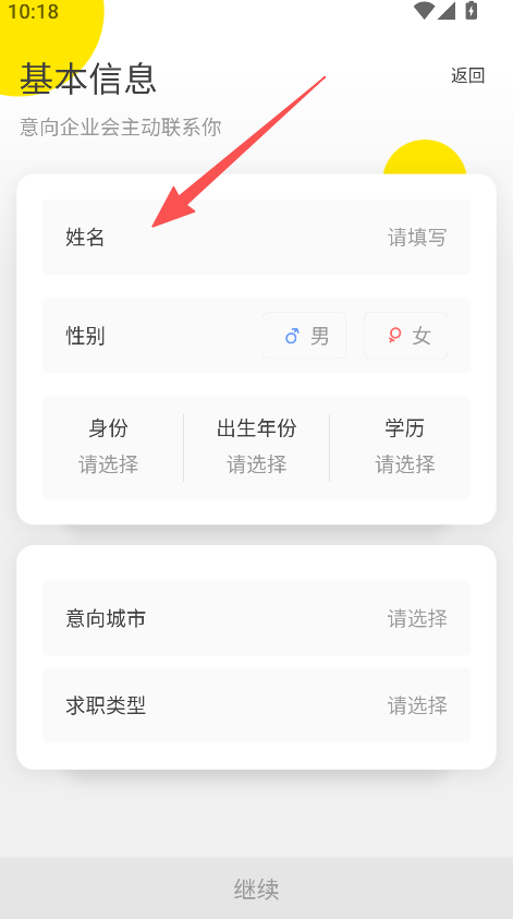 2、填写基本信息,如姓名、意向城市等,完成信息录入。