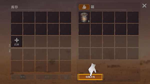 5、左侧显示的是库存物品,右侧是盒子内物品,点击收集所有来进行采集。