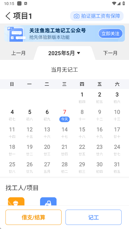 3、工人自己也能利用这款应用记工、记账,当发工资的时候才有凭据和班组长对账。