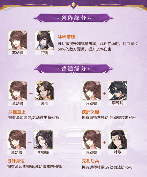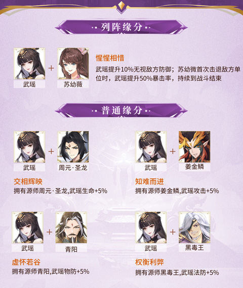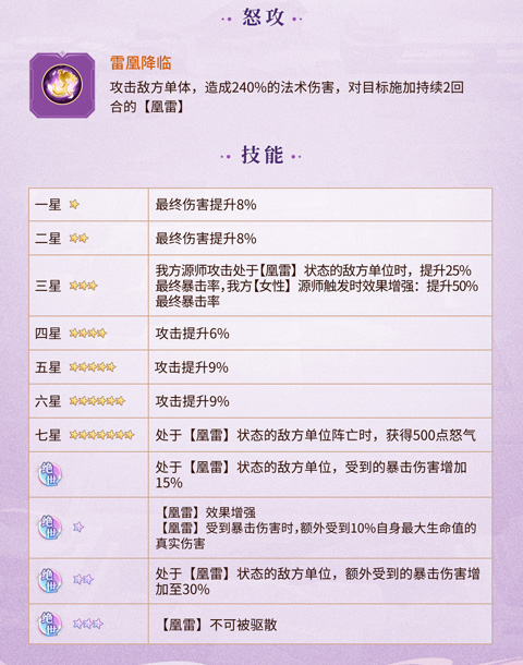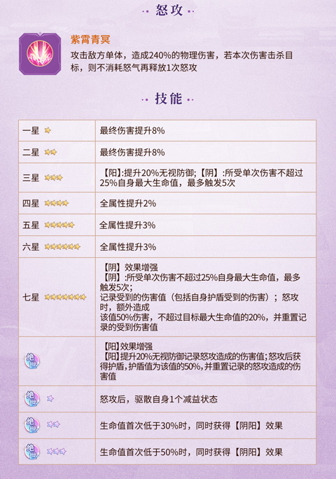 云烟游、破玉指、天罗手、紫霄青冥、紫晶星图