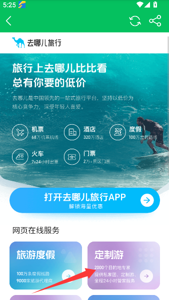 3、在旅行服务页面中选择“定制游”功能,根据个人兴趣与需求开始规划专属的旅游路线方案。