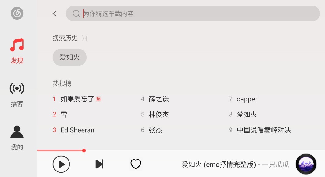 网易云车机版,为驾车场景量身打造的音乐神器。海量曲库涵盖各种风格音乐,满足不同用户的听歌喜好。简洁易用的界面设计,操作便捷,让你专注驾驶不分心。具备智能推荐功能,精准推送符合你口味的歌曲。还支持多端同步,无缝衔接你的音乐体验。实时更新热门榜单,紧跟音乐潮流。使用网易云车机版,让每一段驾驶旅程都沉浸在美妙音乐中,畅享极致视听盛宴。