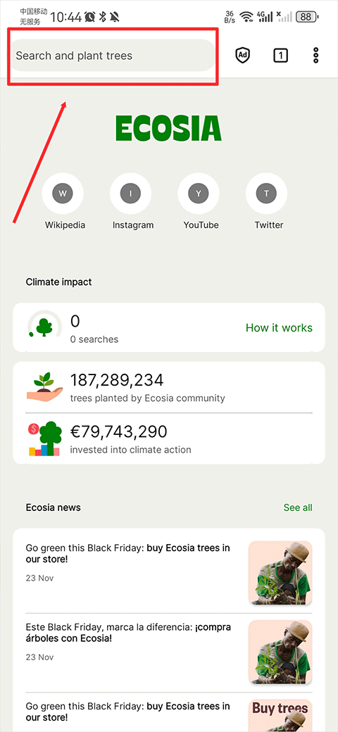 ② 搜索与浏览合一:Ecosia浏览器将搜索引擎与浏览器整合,无需频繁切换应用。