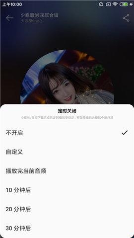 4、点击可以开启定时关闭,支持选择时间或自定义。
