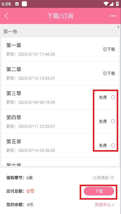 5、选择自己想要下载的章节,就可以点击【下载】进行章节的下载。