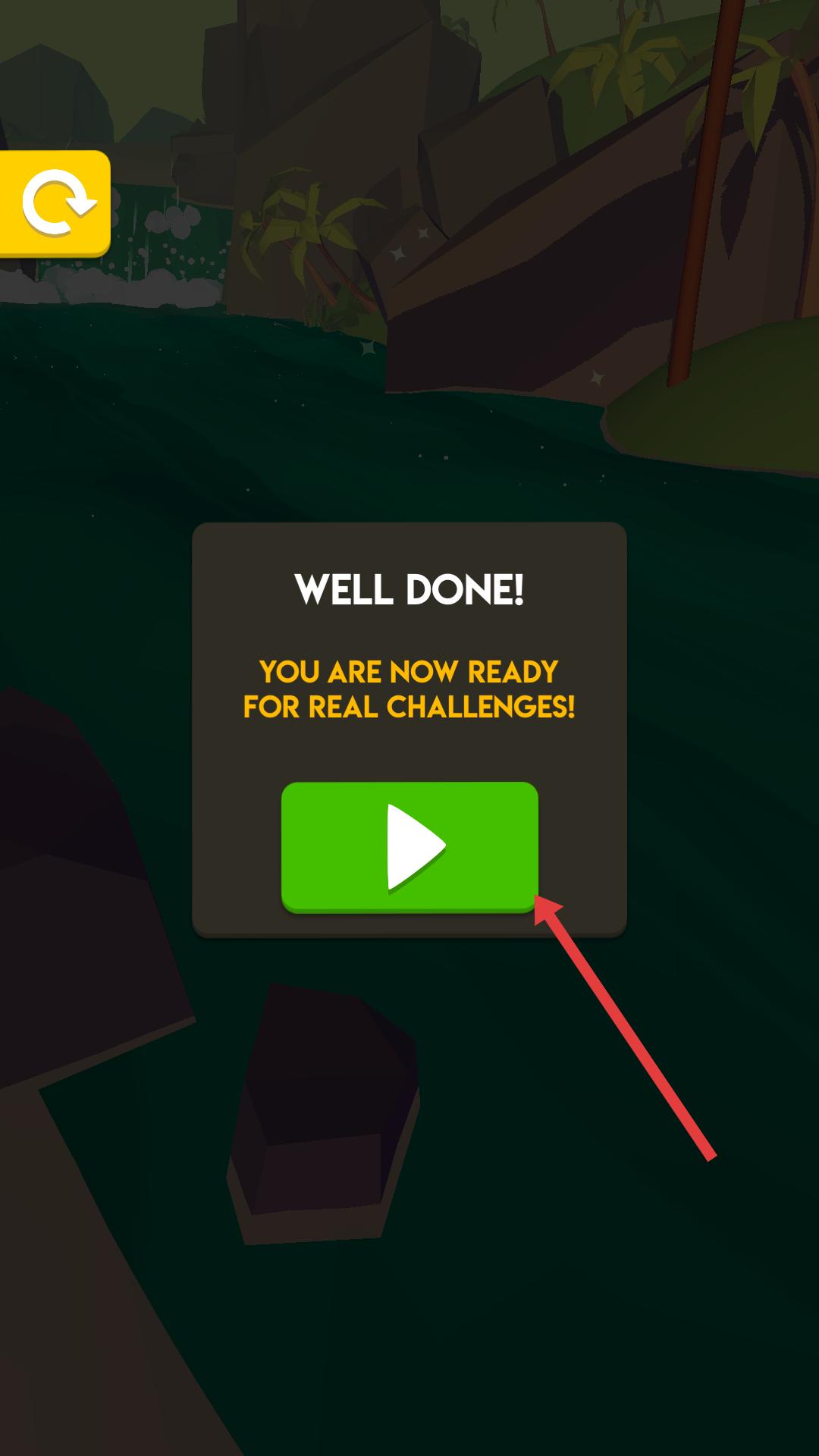 4、到达终点后界面显示完成关卡,点击绿色按钮,可进入下一段更具挑战性的水上冒险关卡。