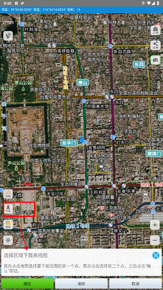 2、然后在地图上面选择要下载的区域,然后点击确定即可下载。