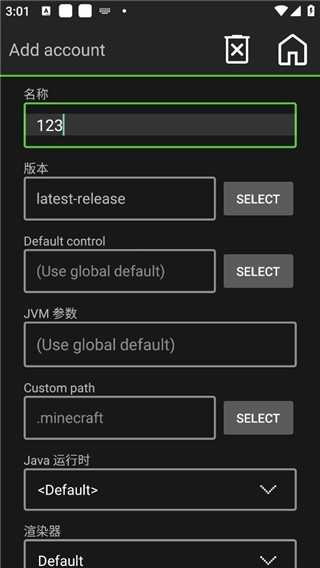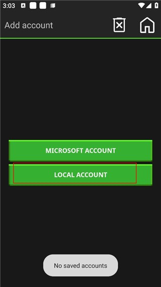 8、当我们点击启动游戏时会进入此界面,这是告诉我们没有账户,我们点击“LOCALACCOUNT”创建账户;