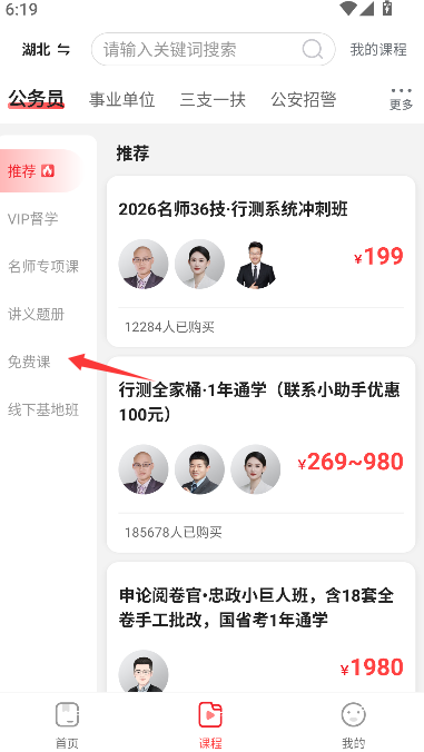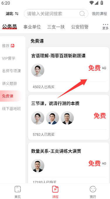 2、选择并点击“免费课”选项,页面将跳转至展示所有免费学习资源的列表页。