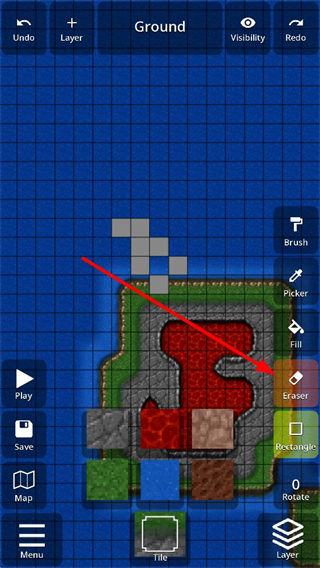 2、使用Eraser工具可擦除绘制的方块,还能通过Rectangle工具进行矩形区域绘制,方便对地图进行修改和调整。