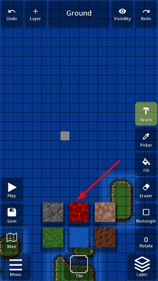 1、进入地图编辑器界面,可选择不同方块如红色方块等,利用Brush、Picker等工具网格上绘制地形,打造多样地图场景。