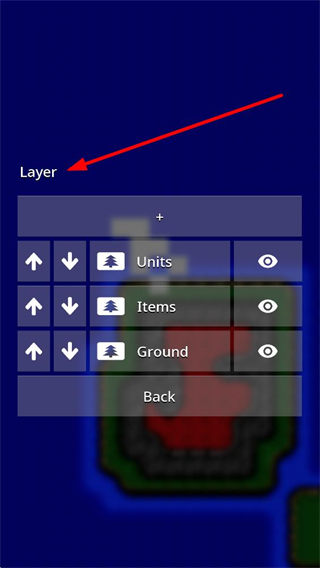 3、进入Layer界面,可对Units、Items、Ground等图层进行管理,调整图层的上下顺序及可见性,实现多层地图编辑。