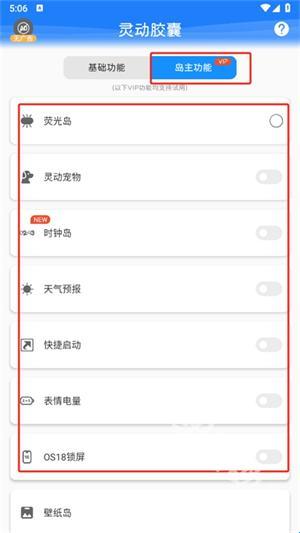 4、在岛主功能页面提供了荧光岛、时钟岛、壁纸岛、灵动宠物等超多功能。