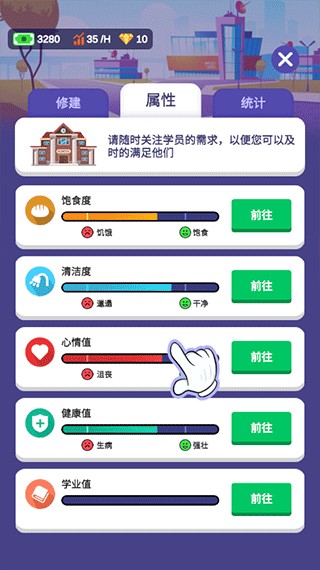 3、学生有四种不同的需求,满足不了可能会退学,学业值满时可顺利毕业。