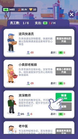 5、在人才市场可以配置学校需要的职员,需要给每名员工支付薪水。
