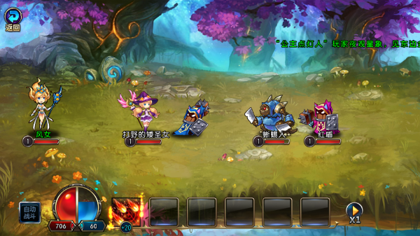 5、开始战斗,进入新手教程,带上你的队友点击下方的技能攻击敌方,也可点击自动战斗。
