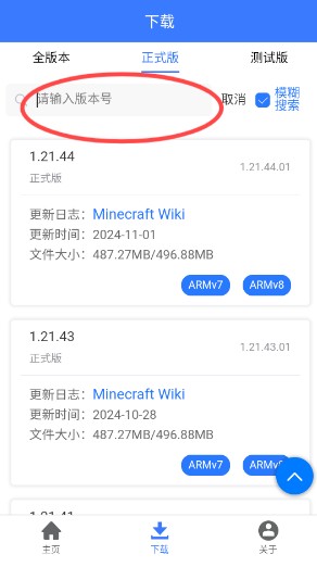 还可以通过输入版本号,快速搜索你所需要的游戏版本。