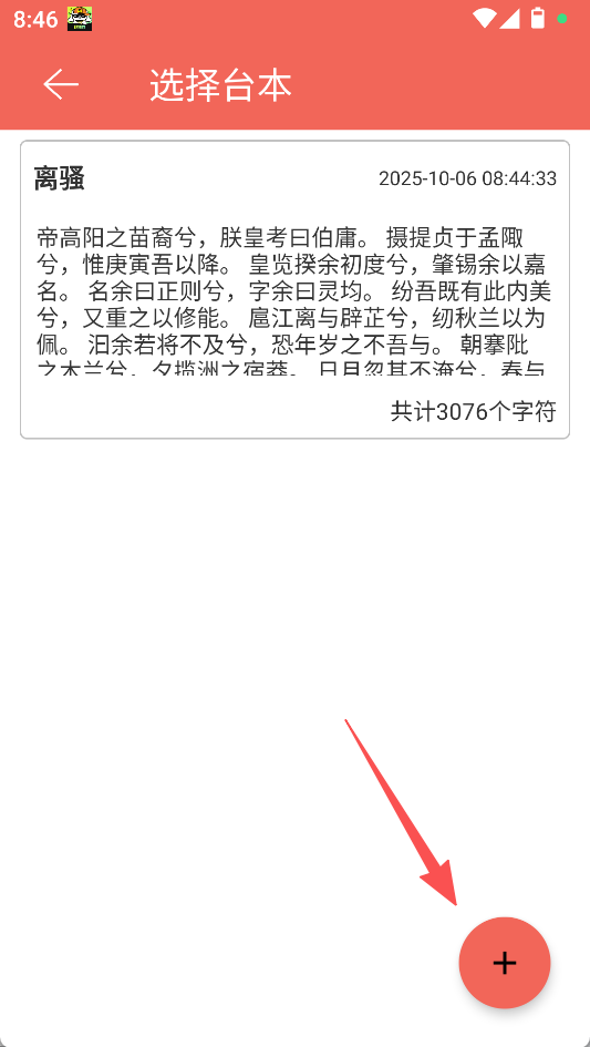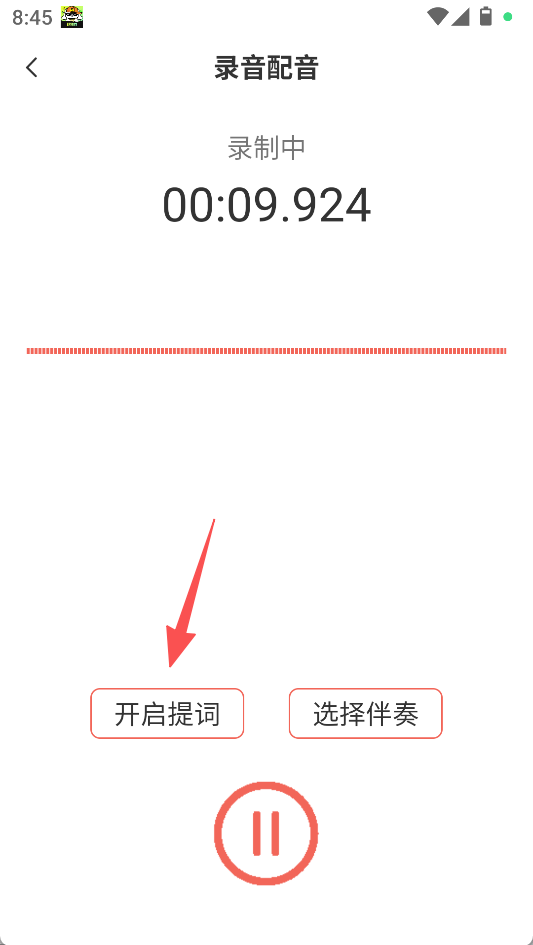 2、在录音配音页面,可点击“开启提词”,进入选择台本页面后,点击“+”添加台本。