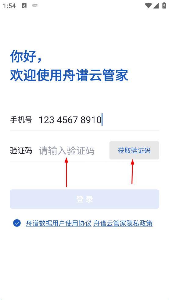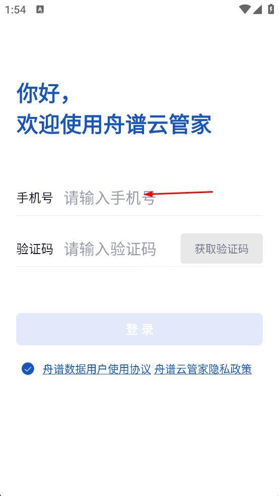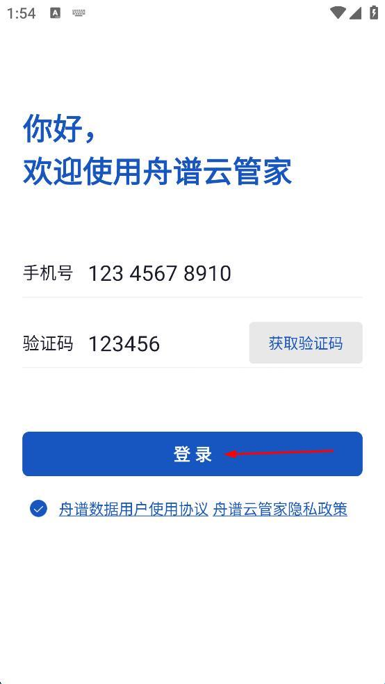 4、确认手机号和验证码输入无误后,点击“登录”按钮,即可尝试登录舟谱云管家APP。