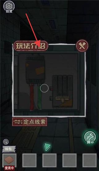 2.职员室,阅读桌子上架子上放着的破旧工本,翻开卷尾,记住线索《绿转3下,红转6下》。点击左侧窗户下的电箱,【点击红色按钮6次(指向左侧),点击绿色按钮3次(指向右下)】。点击电闸,打开备用电源。离开职员室。