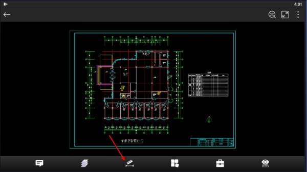 1、我们打开一张CAD图纸后,选择下方第三个尺子图标。