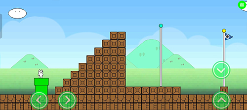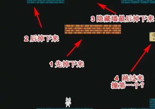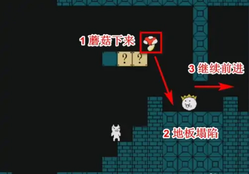 3、终点前有三个方块,先顶第一个再顶第三个,怪物会把毒蘑菇向右丢,把假猫毒死。