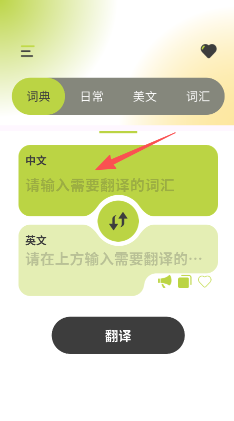 1、打开软件,在中文输入框输入需要翻译的词汇。