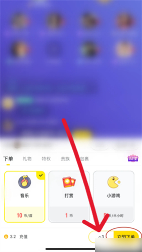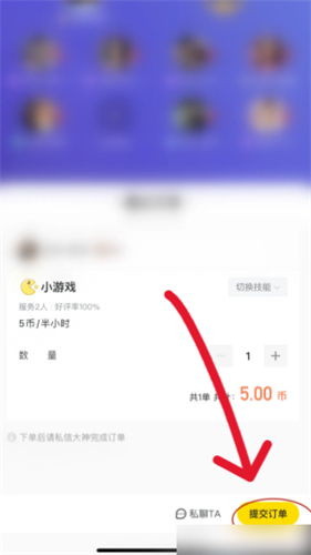 1、打开小鹿电竞的房间页面,点击 “下单” 按钮。