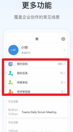 3、点击“我”的页面查看任务、日程、审批等内容,操作简单直观,适用于企业日常协作管理。