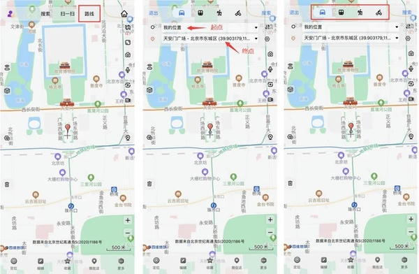 1、支持公交、自驾、人行三种方式进行线路搜索,为用户提供多种出行选择;