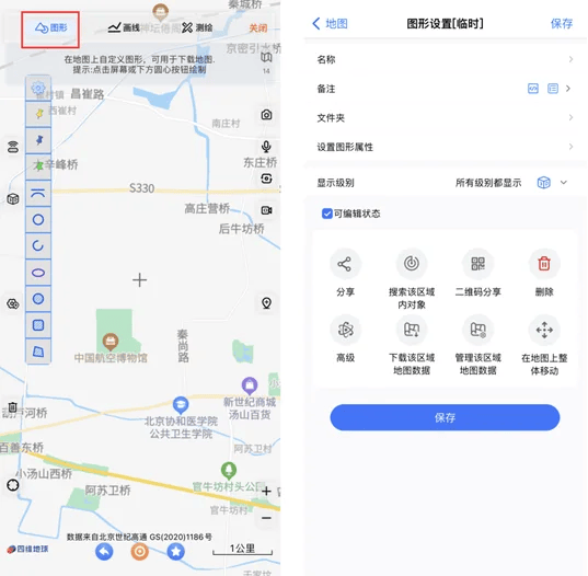 为您提供规划设计的常用工具,您可以在地图直接编辑点、线、图形,可额外添加图表、照片、视频等信息,方便外业调查与数据采集。