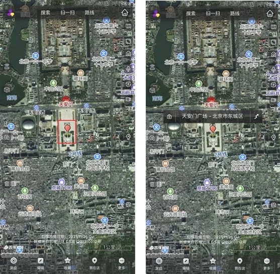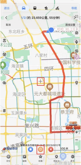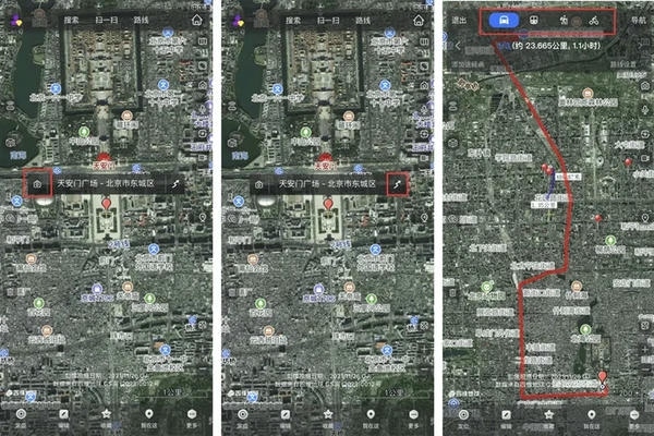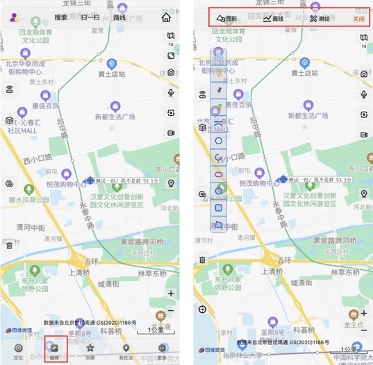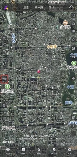 点击左下角“定位”图标,屏幕中心点即可回到当前所在位置;