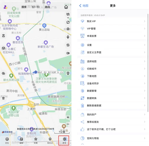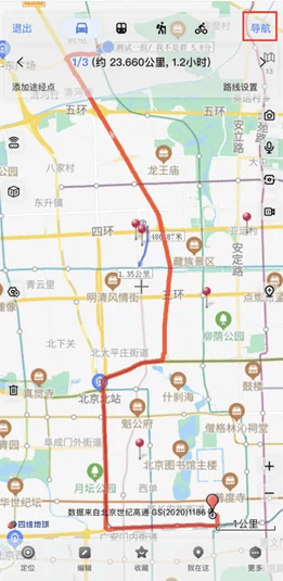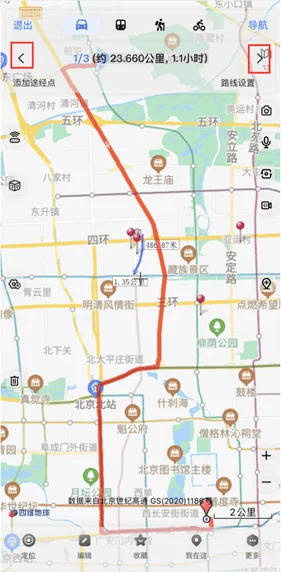 记录轨迹:打开“后台定位”,选择“开始记录轨迹”,即可记录行动轨迹,结束时选择“停止记录轨迹并保存”,同时关闭“后台定位”(否则耗电大)
