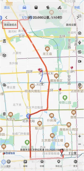a、如需选择收藏夹中的位置为途径点,点击星型图标,从收藏夹中选取途径点;