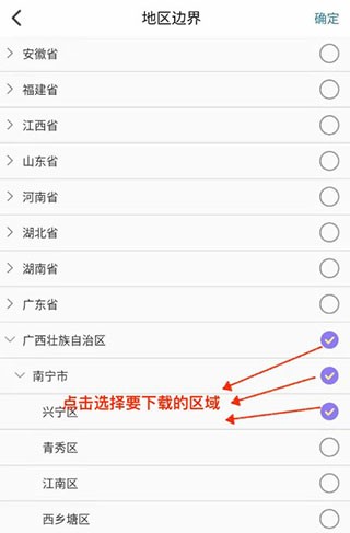 4、也可以直接选择下载区域,点击选择按钮,到如下也你按进行选择。选择完成后,点击确定进行下载