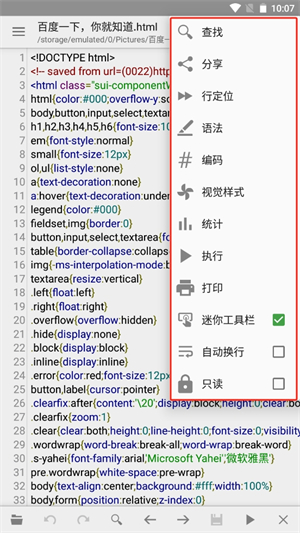2、手机也能编辑代码,可以处理比较大型的文本文件,代码运行性能超高。