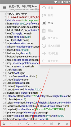 2、撤销、全选、粘贴、插入颜色、增加缩进等文档app的功能全都有。