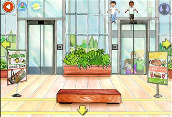 1、首先打开娃娃屋plus游戏,来到电梯口,跟我们现实中一样,点击按钮可以开门;