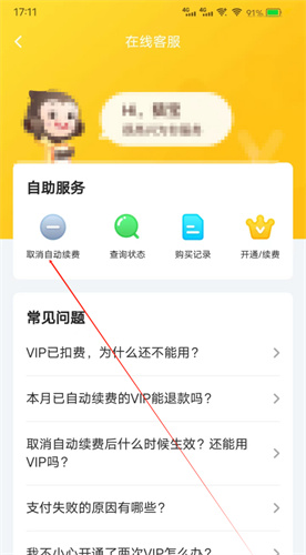 3、点击【取消自动续费】选项,这样小猿口算就不会自动扣费了。
