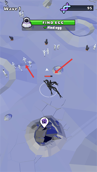 3、敌人攻击性增强需注意躲避持枪敌人的攻击,利用移动优势周旋同时寻找机会吞噬敌人提升自身实力。