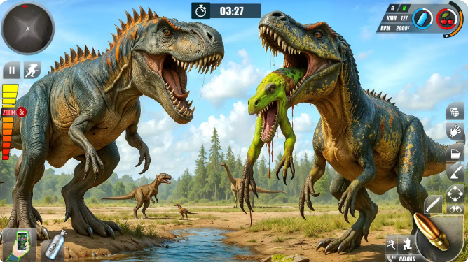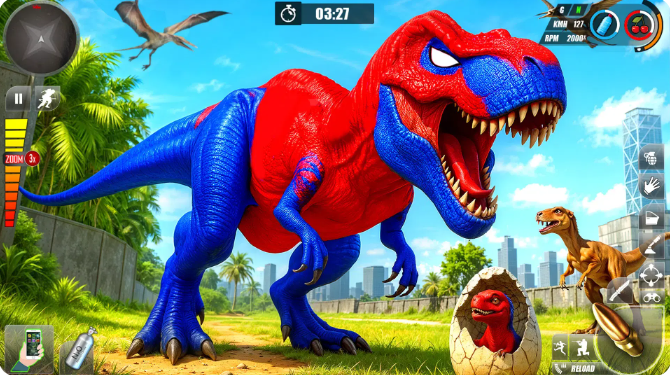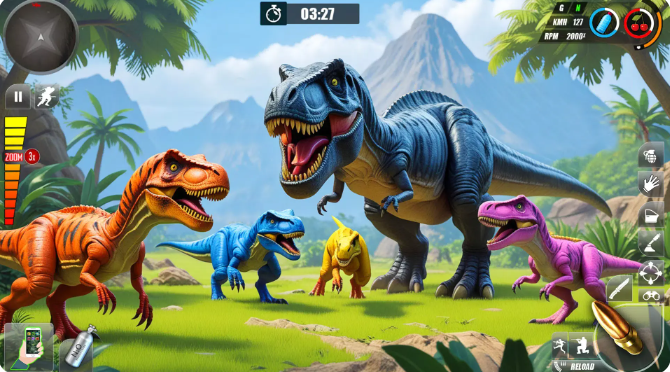 2、探索丰富的恐龙栖息地穿越茂密的丛林、崎岖的山脉、神秘的洞穴。
