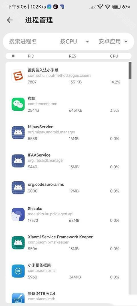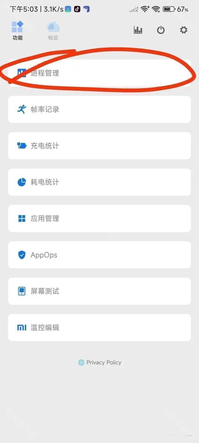 2、选择左上角的功能,有个进程管理,点进去即可查看后台情况。如图