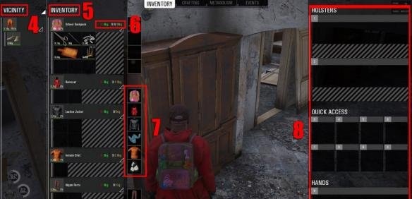 5、这是您的库存栏,所有储物空间均会在此显示。如果衣物没有物品槽位,则不会出现在库存中。